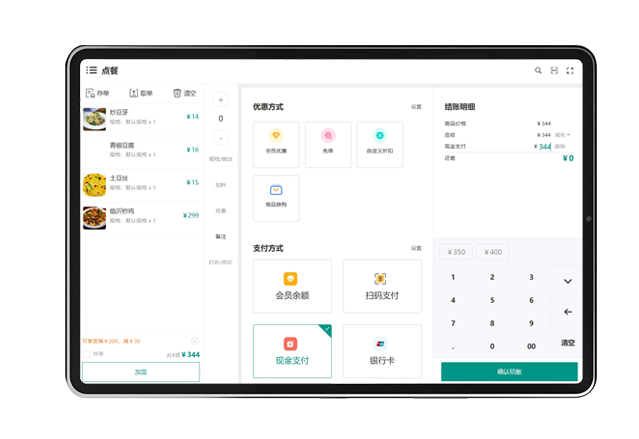 餐饮收银台、商品管理、门店管理、财务管理、移动支付等,适用于不同规模及不同形态的餐饮企业